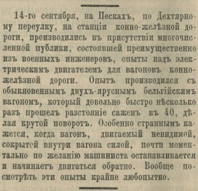 1-й Электрический трамвай в Российской Империи, построенный без участия иностранных концессионеров и с использованием отечественных вагонов.